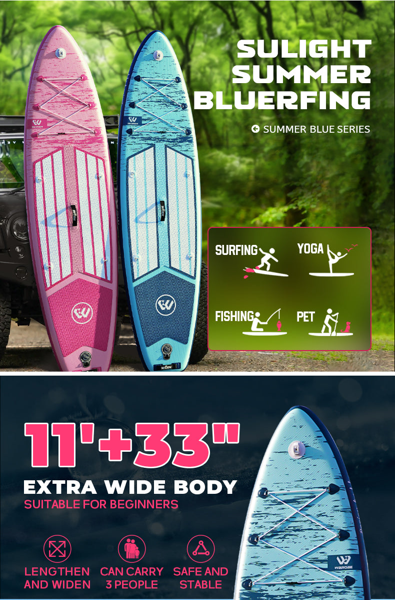 Our paddle boards are more stable and more suitable for beginners, so you won’t have to worry too much.